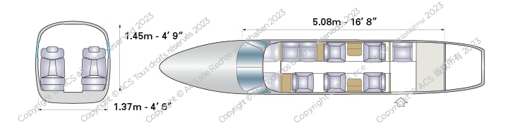 - It isn’t banned from certain noise-sensitive airports and can be flown by a single pilot, resulting in lower operational costs than a two-pilot private jet.