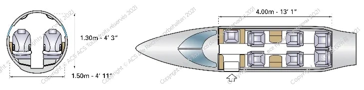 • Up to eight passengers can travel in the cabin.