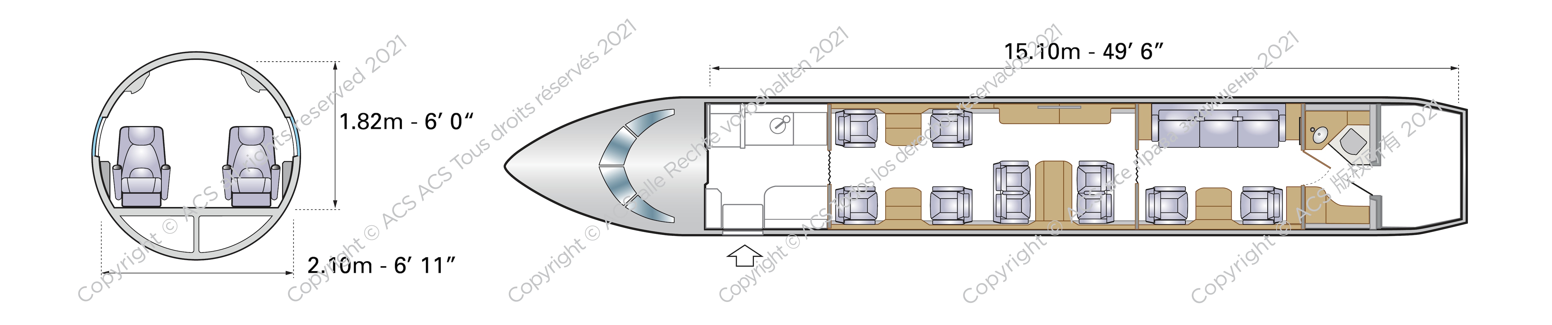 Below is the standard configuration of an Embraer Legacy 600.