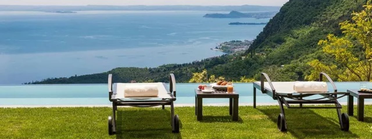 The hotel makes the most of its natural surroundings, with an award-winning spa and swimming pool positioned to invite in more natural light and enjoy sweeping vistas of the lake. Meanwhile, meals in the acclaimed on-site restaurants showcase seasonal produce from local farms and homemade olive oil.